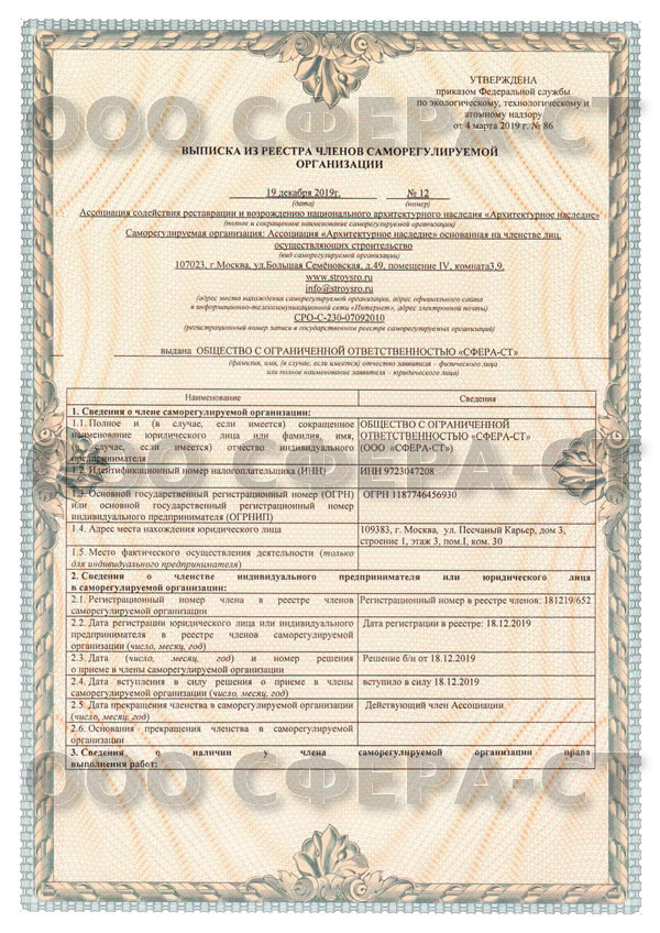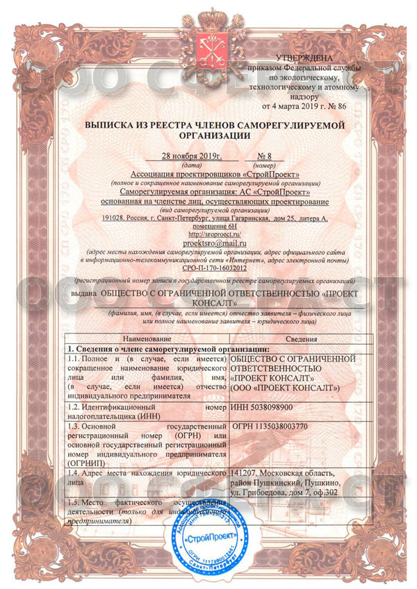 Свидетельство СРО ООО «ПРОЕКТ КОНСАЛТ»