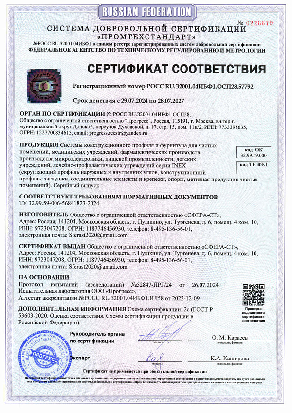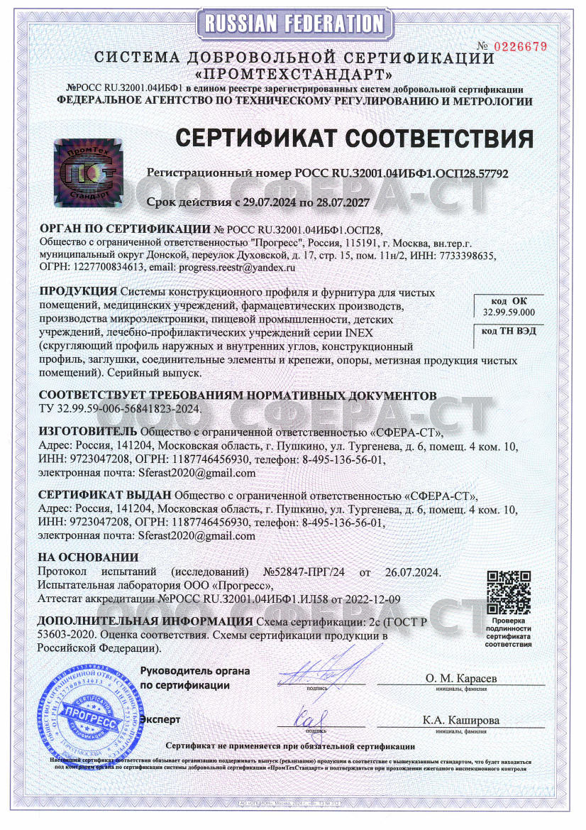 Системы конструкционного профиля и фурнитура для чистых помещений