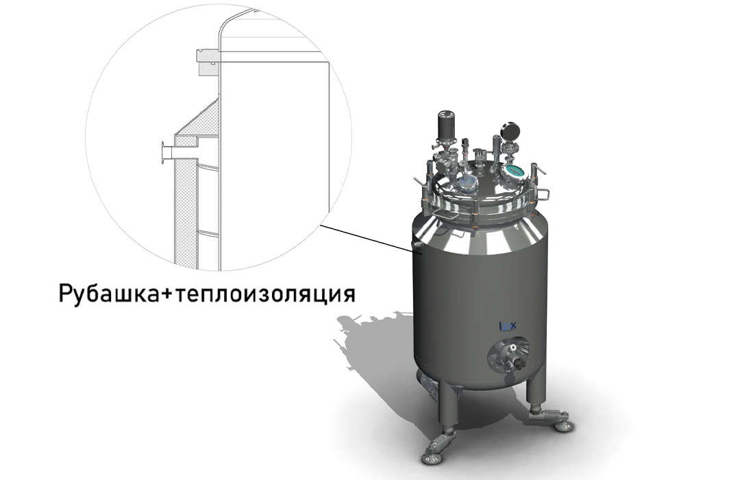 - рубашка нагрева и охлаждения с теплоизоляцией;